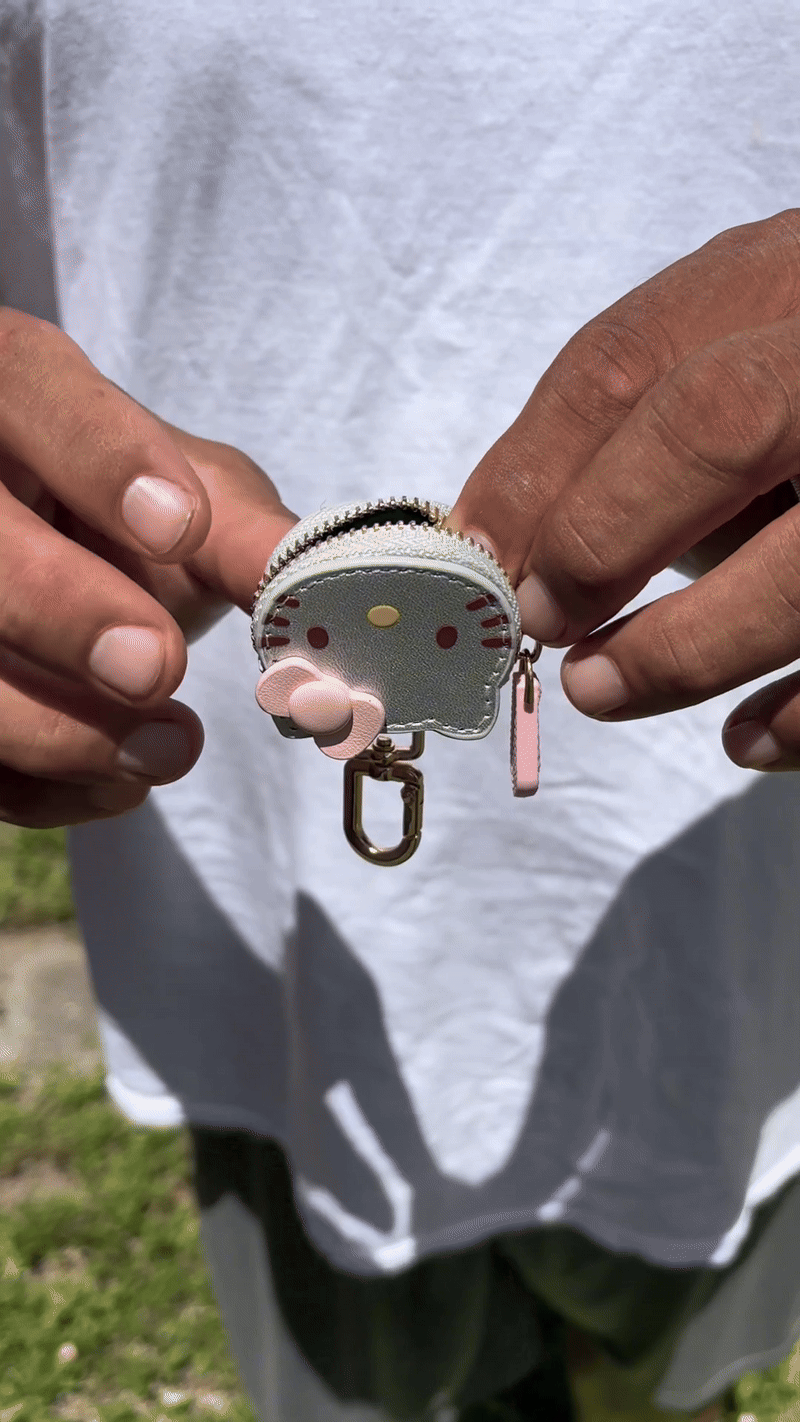Keep your treasures safe and stylish with this adorable Hello Kitty–shaped jewelry holder! Made from smooth leather, it’s the perfect compact size for rings, earrings, or small charms. Designed in the shape of Hello Kitty’s face, it features a secure zipper that runs around the outside, keeping your jewelry neatly stored and easy to access. Cute, practical, and perfectly portable—ideal for travel or everyday us